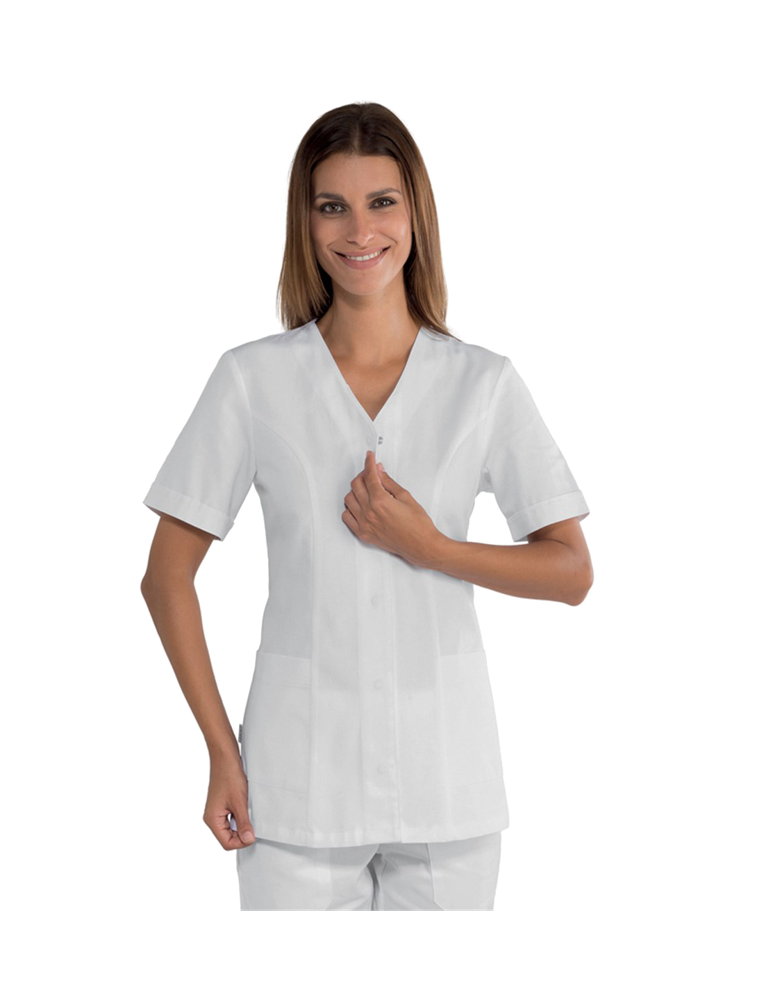 Casacca Sion Bianca da Lavoro Estetista e Sanitaria 100% Cotone 190 g/m² | ISACCO – Donna Mezza Manica