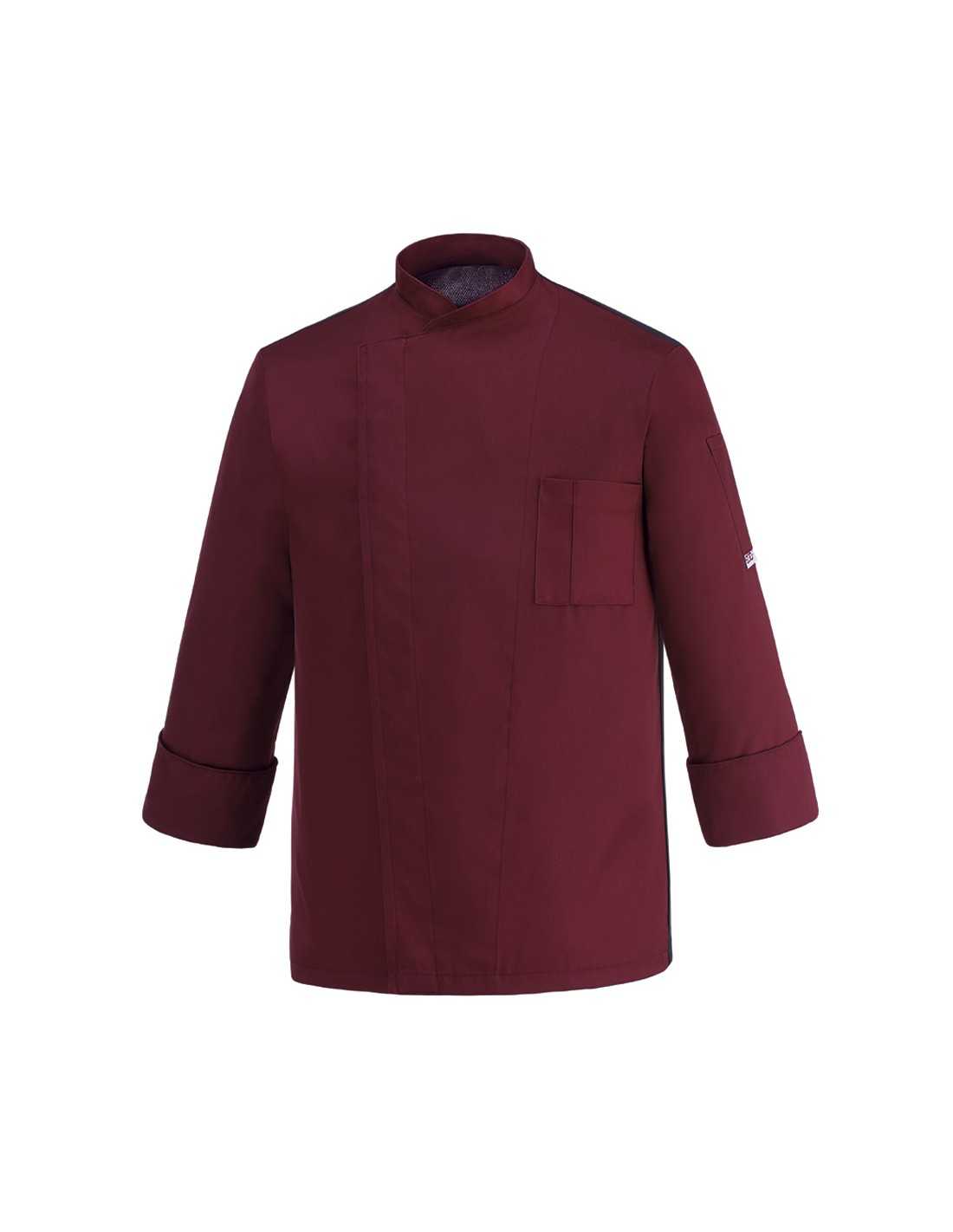 Giacca da cuoco bordeaux modello OTTAVIO firmata EGOCHEF, realizzata in 50% Lyocell – 50% Poliestere, peso 130 g/m².