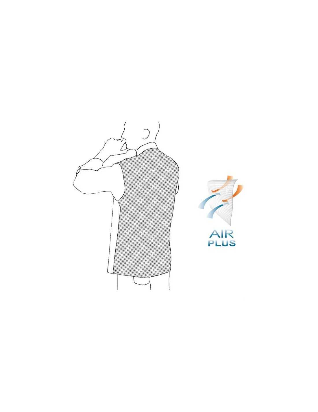 Tessuto antimacchia e antistiro, leggera e traspirante con schiena forata.