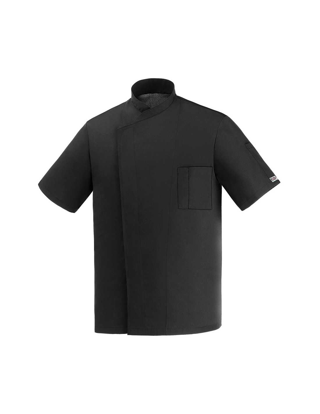 Giacca da cuoco nera EGOCHEF, modello OTTAVIO, realizzata in microfibra Air Plus 100% poliestere.