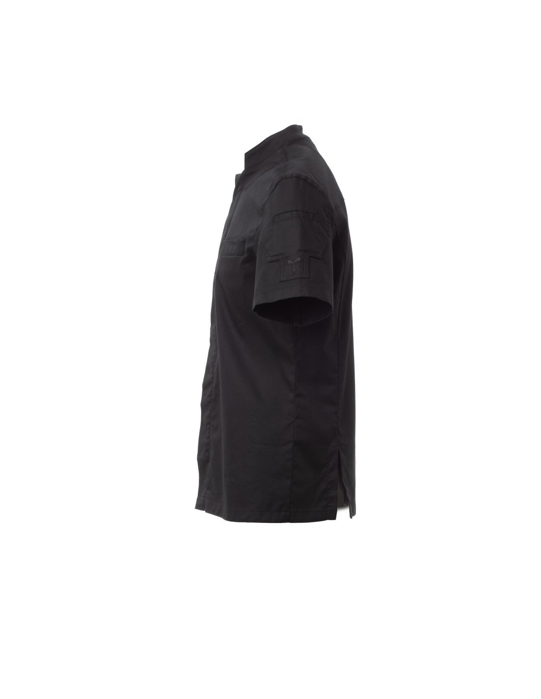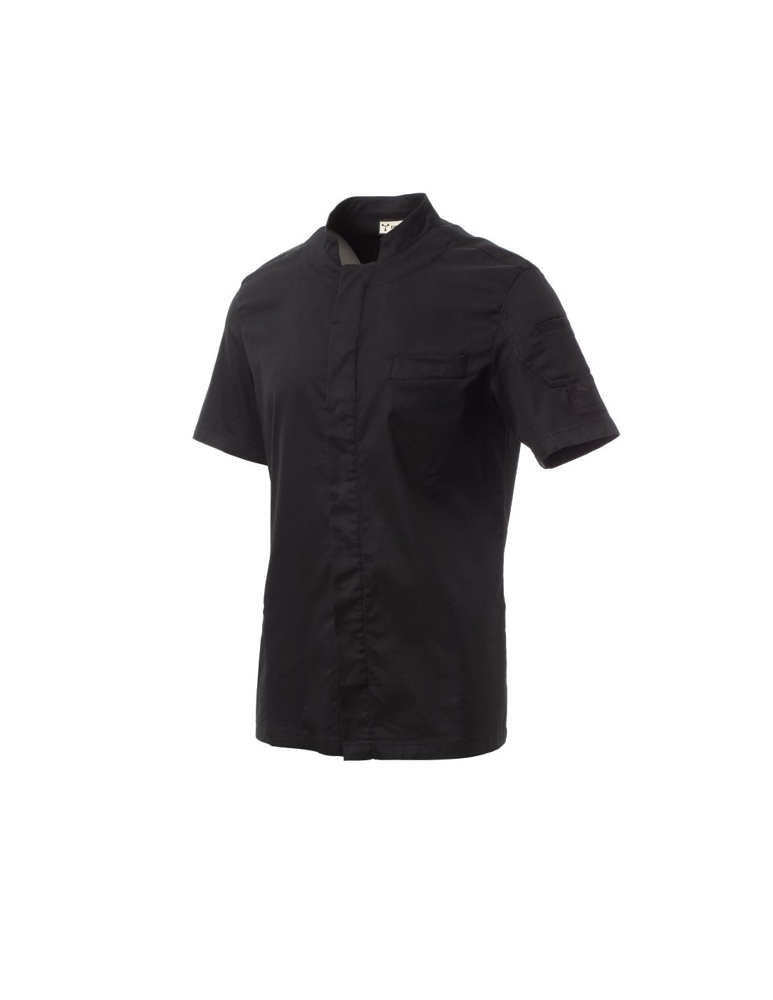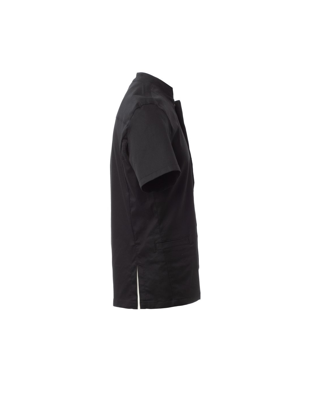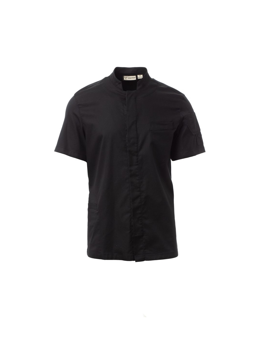 Giacca da cuoco SUPREME Payper nera a manica corta in tessuto elasticizzato con collo alla coreana, bottoni automatici e inserti in rete traspirante sotto le ascelle. Leggera, confortevole e funzionale, ideale per chef e professionisti della ristorazione.