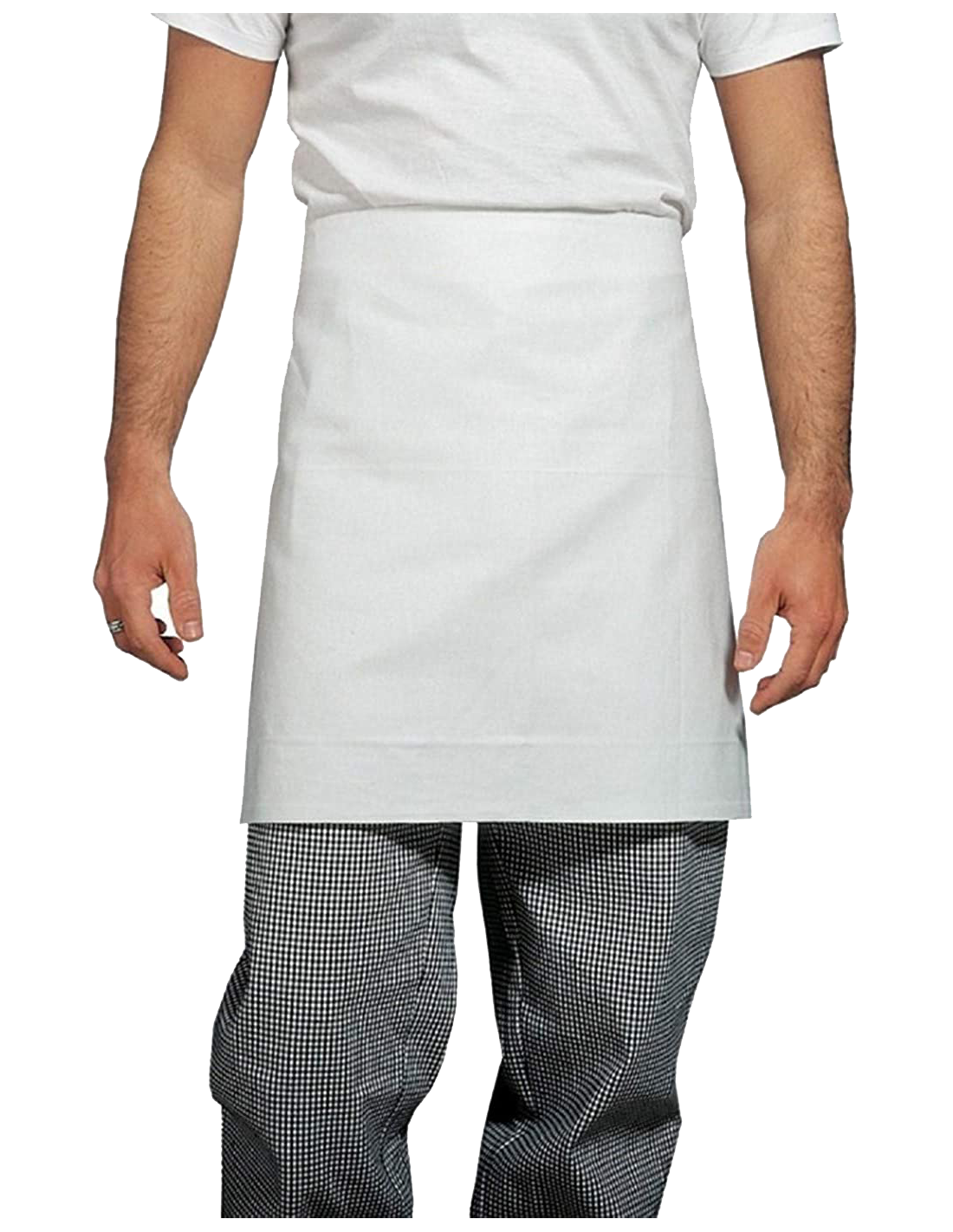 Grembiule da cuoco bianco senza pettorina marca RISTOHOUSE, realizzato in 100% cotone 200 g/m².