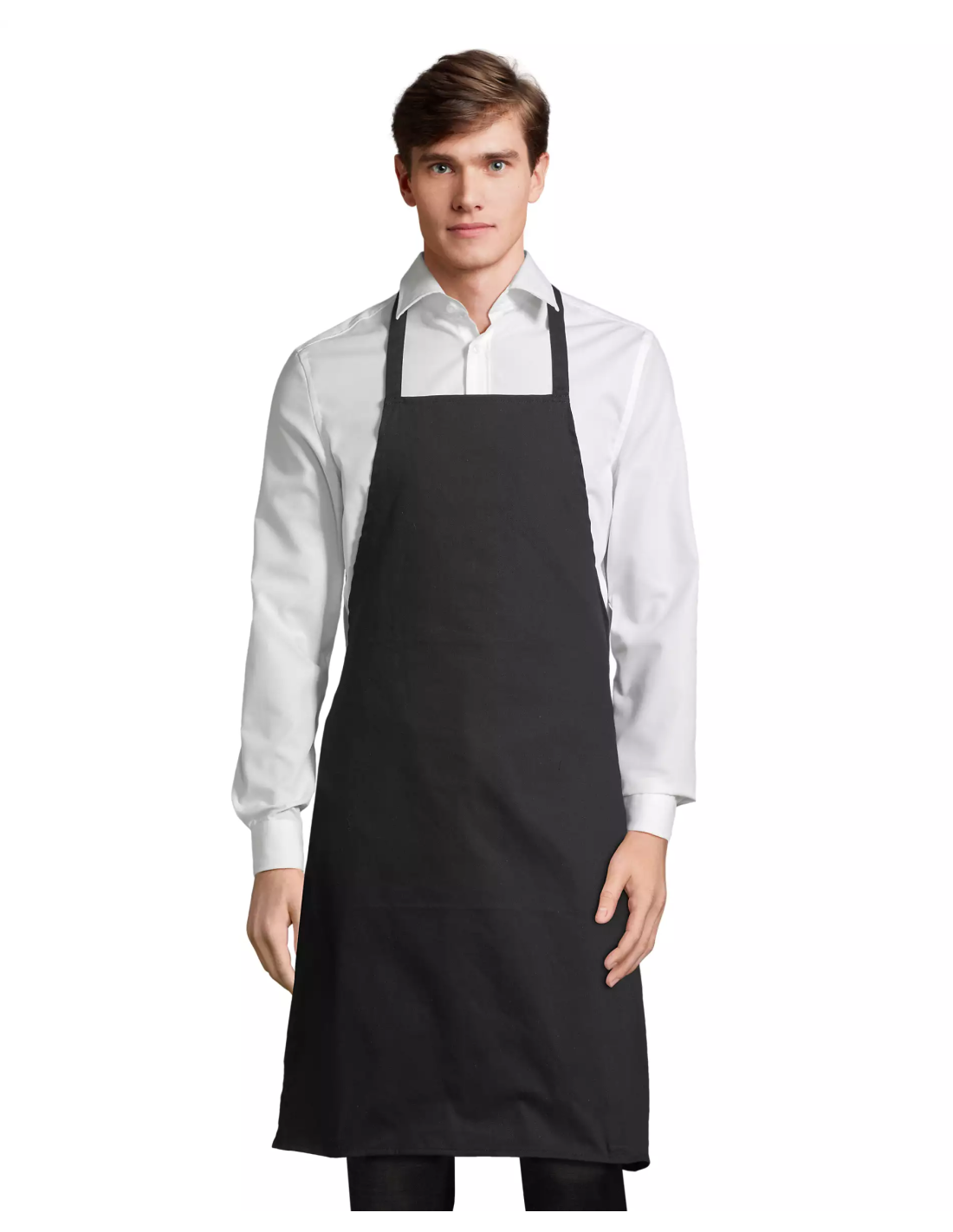 Grembiule da cuoco nero con pettorina, modello GLASGOW SOL’S, realizzato in 100% cotone twill 180 g/m².