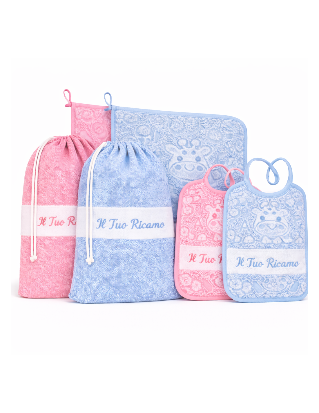 Set composto da: Sacca + Bavaglino + Asciugamano