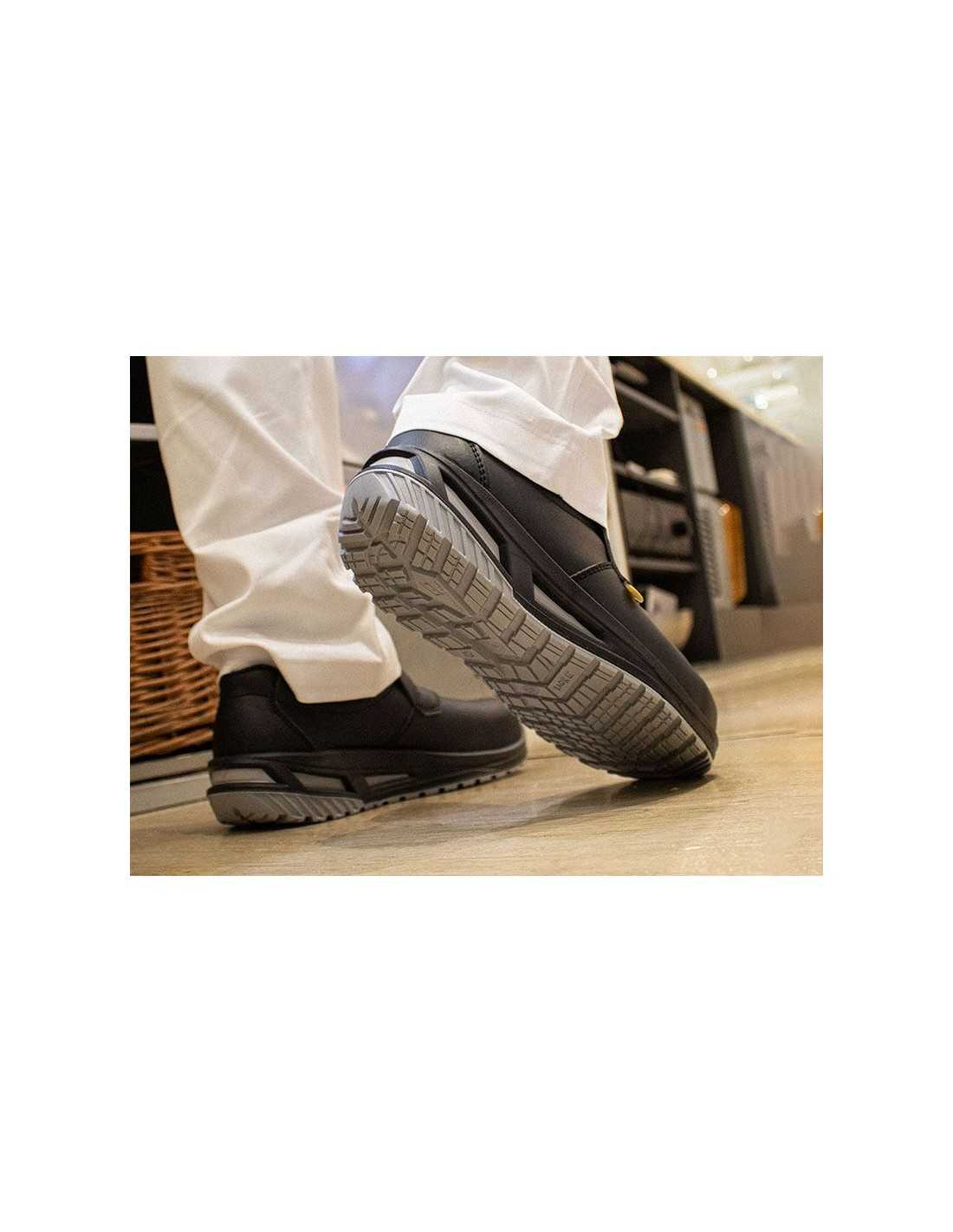 GIASCOScarpa da cuoco nera GIASCO ARENDAL S2 ortopedica, bassa, senza parti metalliche. Puntale composito 200J, suola 3MOVE tre densità antiscivolo, antishock e FO resistente agli idrocarburi. Soletta trimaterial Memory defaticante, ESD. Taglie 36-47.