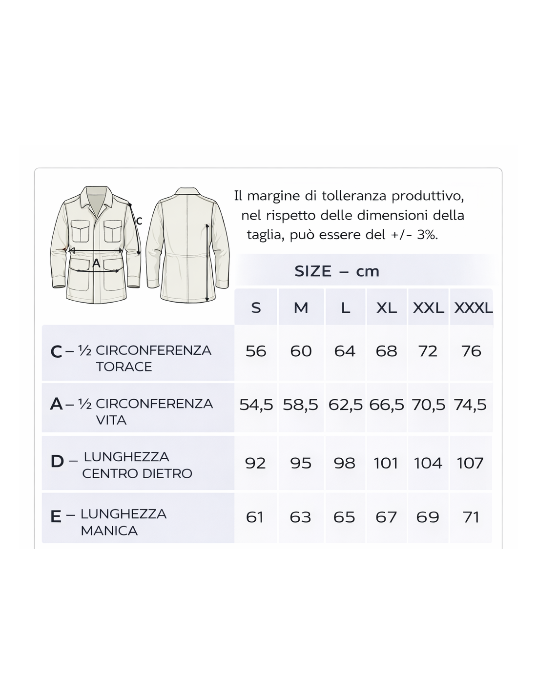 Composizione: 65% poliestere, 35% cotone irrestringibile